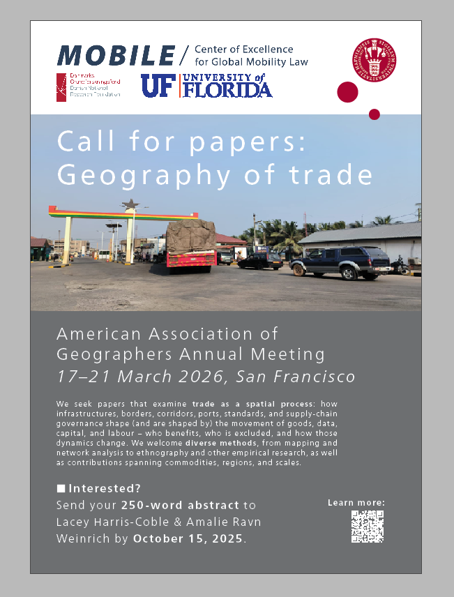 Abstract: Trade cuts across economic, political, cultural, and environmental geographies, yet it is not often given attention as a standalone topic. The geography of trade examines how the flows of goods, services, capital, and labor are shaped by spatial arrangements. It asks how infrastructures, borders, policies, and social relations structure exchange and networks across scales, and how trade, in turn, reshapes places. This session invites papers that examine trade as a spatial process: how infrastructures, borders, corridors, ports, standards, and supply-chain governance shape (and are shaped by) the movement of goods, data, capital, and labor. We seek contributions that focus on how place, scale, and territory organize trade networks and outcomes – who benefits, who is excluded, and how those dynamics change. Scholars may approach these questions through diverse methods, from mapping and network analysis to ethnography and other empirical research. We welcome quantitative, qualitative, and mixed-methods work, as well as contributions spanning commodities, regions, and scales.
